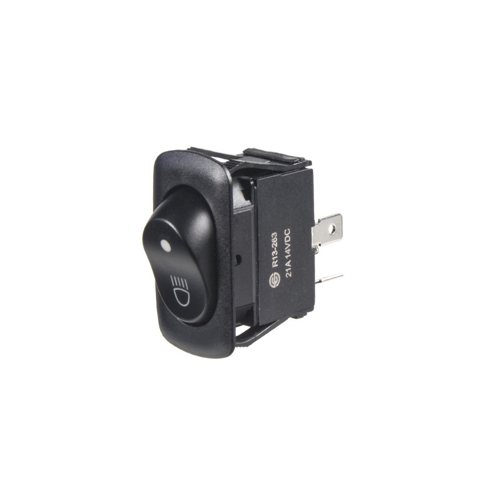 Kolískový spínač určený pre použitie pri napätí 12 V, vybavený symbolom svetiel a kontrolkou. Maximálny prúd je 21 A pri 12 V.
